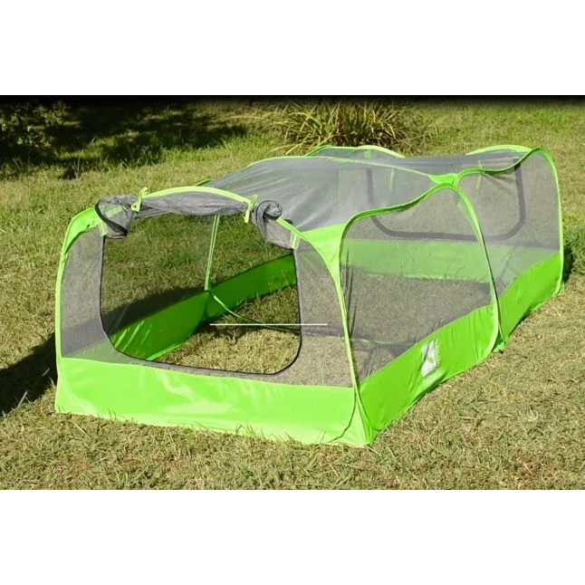 Il a l’avantage d’être équipé de deux ouvertures à fermetures sécurisées et 6 piquets permettant d’assurer une bonne stabilité au sol.