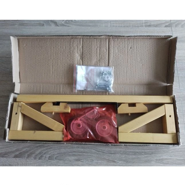 Deux roulettes avec leurs tasseaux et une poignée : voici de quoi se compose le kit de transport que nous vous proposons. Les roues se fixent avec leurs tasseaux en bas des montants en bois du Chabo et la poignée sur la face opposée, en hauteur.