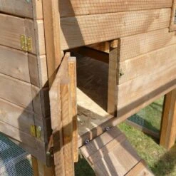 Depuis l’espace nuit, vos poules accèdent librement au parc grâce à une rampe en bois.