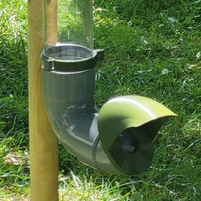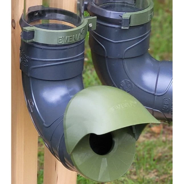 Ce distributeur de nourriture est équipé d’un coude robuste, conçu à partir de matériaux recyclés, avec une ouverture spécialement dimensionnée pour convenir à la tête des volailles.