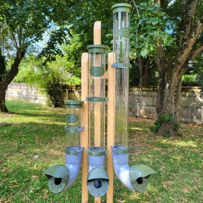 Offrez à vos volailles une alimentation toujours disponible et bien protégée grâce à cette mangeoire verticale au format tubulaire.