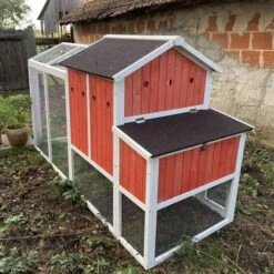 Poulailler Deluxe Rouge Toit Shingle Vert 10 à 12 Poules Avec Extension Parc Grillagé