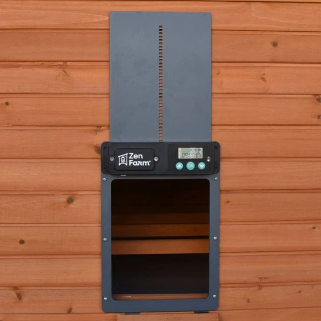 Avec sa porte intégrée, le portier monobloc de Zen Farm est une solution hautement sécurisée pour votre poulailler. La maison de vos poules sera bien barricadée et les intrus ne pourront une entrée une fois la porte fermée.
