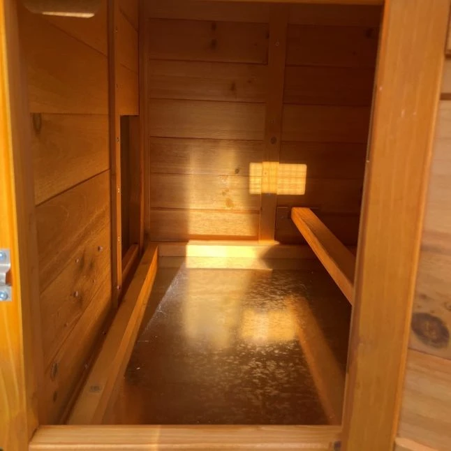 Le Bréda S possède l’avantage d’être muni d’un petit parc au grillage fin qui protègera vos poules d’éventuels prédateurs lorsqu’elles souhaiteront se dégourdir les pattes.