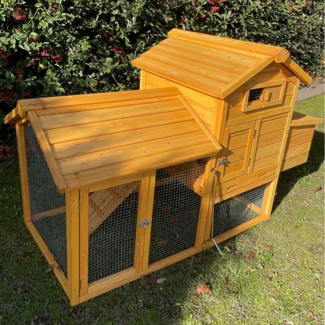 Installez une paire de poule dans ce joli petit poulailler tout en bois très esthétique et très pratique avec son parc grillagé intégré. Vous poulettes y seront très à leur aise !