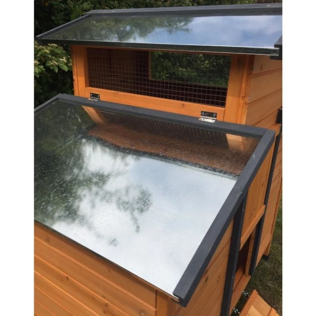 La double pente de l’ensemble de ces toits est spécialement étudiée pour que l’eau ne s’infiltre pas dans les boiseries de l’abri de vos poules.