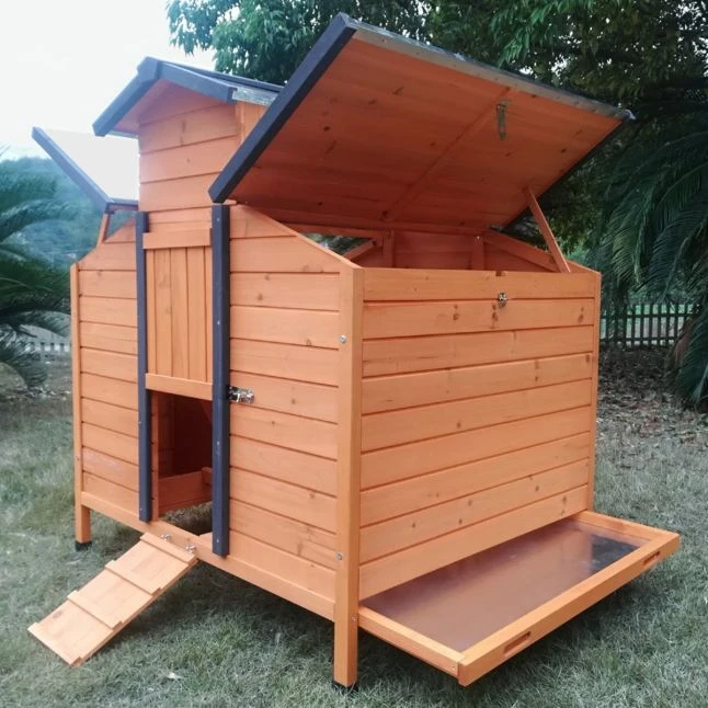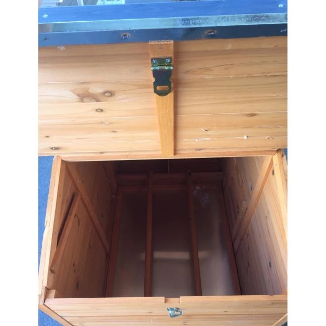 Fonctionnel, le Farmer possède de nombreux atouts dont deux ouvertures avec rampe d’accès et loquets de fermeture, des toits ouvrables pour accéder à l’intérieur facilement, trois perchoirs… Le pondoir est compartimenté en 2 nichoirs.