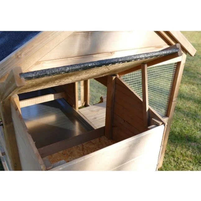 Il est par ailleurs accessible de l’extérieur grâce à son toit séparé, pratique pour la récolte quotidienne d’œufs frais !