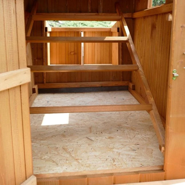La forme de ce poulailler offre un bel espace pour vos animaux. Sa hauteur permet notamment l’installation de 4 perchoirs en escalier. Vos poulettes aimeront aller s’y percher pour passer la nuit au calme.